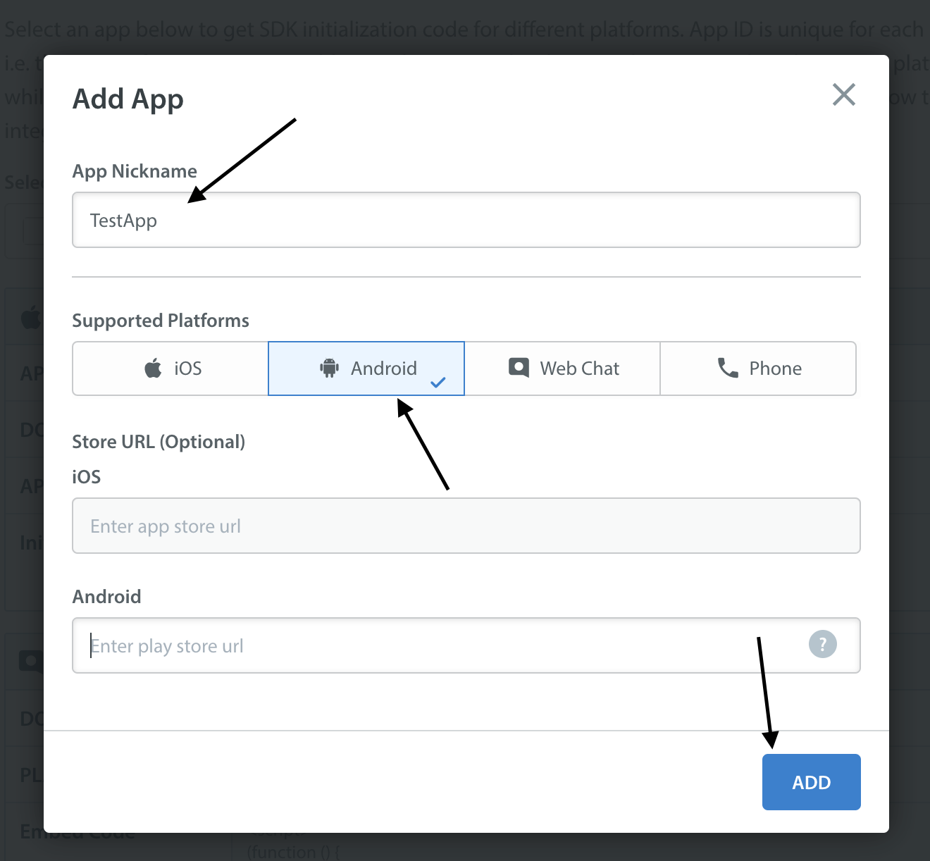 2. Create an app with Android and iOS as selected Platform